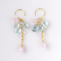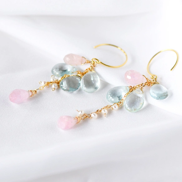 アクアマリンとモルガナイトのシャンデリアピアス – 天然石 / 14kgf