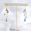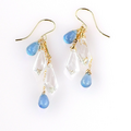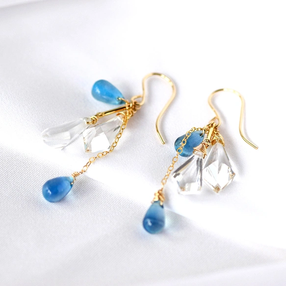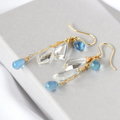 透明感のあるクリスタルと、美しいブルーのアクアマリンを合わせたロングピアスです。