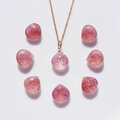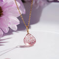 ピンクエピドートインクォーツのマロンカット一粒ネックレス50cmスライド・サージカルステンレス ~桜吹雪