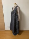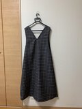 前と後の広めに開いたV襟ぐりの ロング丈のシンプルなデザインです。