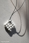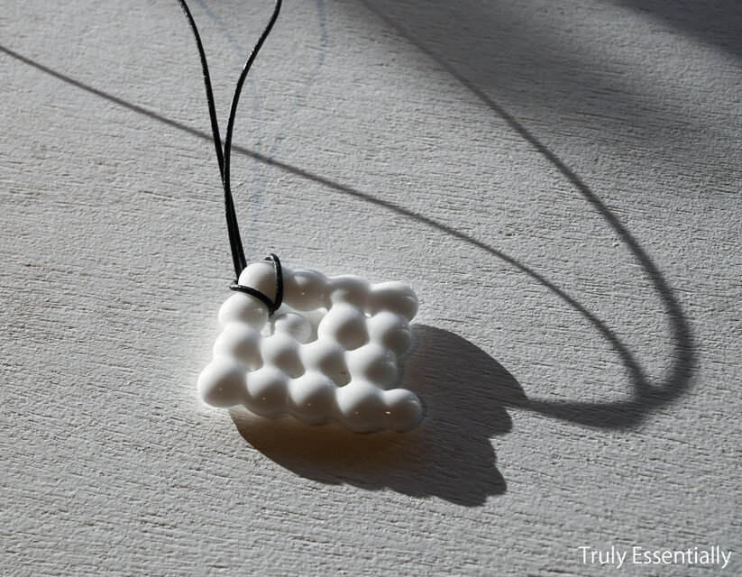 無色透明ストライプガラスのネックレス -「 灯りのたね 」● 45mm・光沢とても美しい作品で、大変気に入りました。 リアルな霜柱のようで、お日様にかざしてみたら、キラキラと優しく光っていて癒されますね。 窓辺に飾ってもきれいですね。 大切に使わせていただきます。 このたびはありがとうございました。 また機会がありましたら、よろしくお願いいたします。