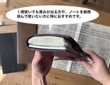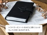 ・幅を26㎝と広めにとっておりますので、手帳やノートの他にも色々と挟んで使うことが出来ます。トラベラーズノートのリフィルなどを使い合わせることで、手帳ライフがさらに楽しくなるような作りにしております。