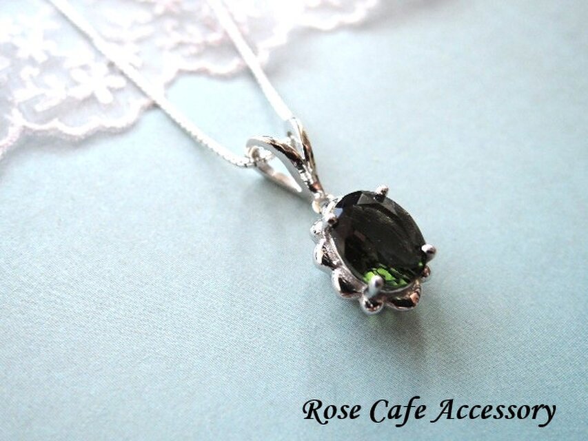 (1435)ちょっぴりアウトレットです✨高品質宝石質希少石モルダバイトSV925製ボックスチェーンネックレス。・。・(^^♪