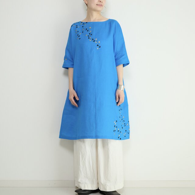 ビビッドブルーのリネンワンピースです!