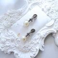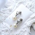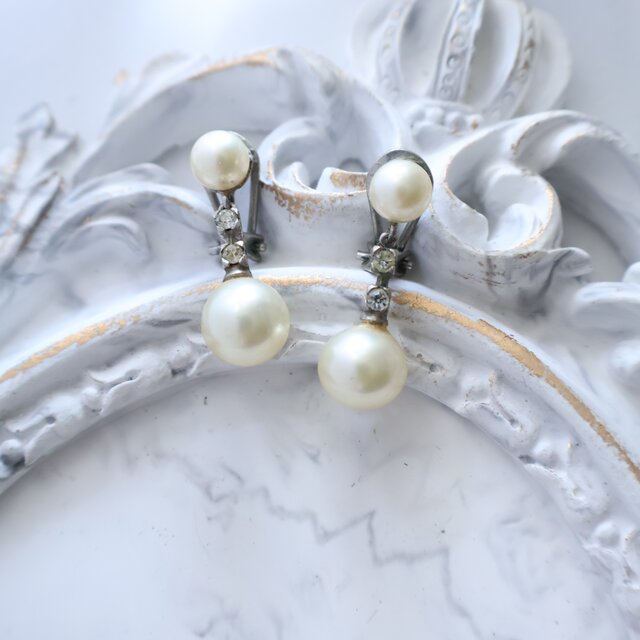 【フランス買付】ヴィンテージ パール&ラインストーン ドロップイヤリング 1980s