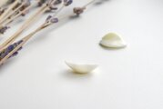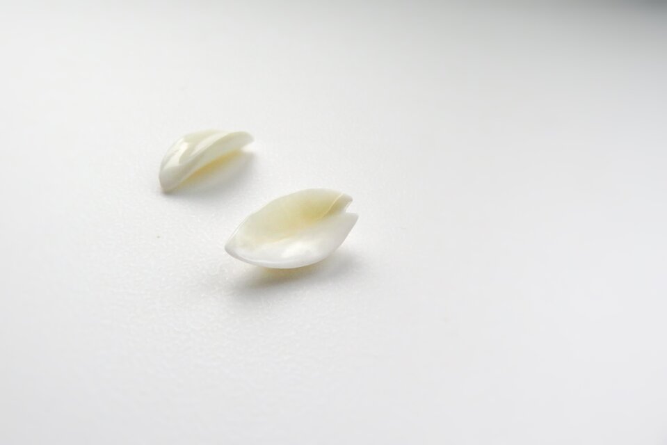 柔らかな印象の、とても素敵なピアスです。艶々とした乳白色の中に半透明な部分もあり 思っていた以上に繊細で綺麗な作品でした。大変貴重な素材とのこと、永く大切にさせていただきます。