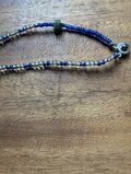 ジャワのクリアとネイビーのシードビーズ(現行品)とエチオピアのホワイトメタルのスペーサー等間隔に繋いでいます。