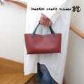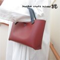 ◎落ち着きがある赤茶色のマルーンカラーのスムースレザーにネイビーのハンドルとステッチで柔らかな雰囲気に仕上げています。(^^/