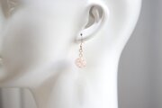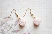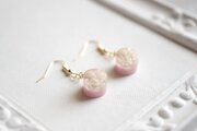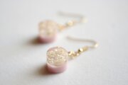お花を三輪とパール、ブリオンを沈めたレジンとピンクで着色したレジンが二層になったピアス。