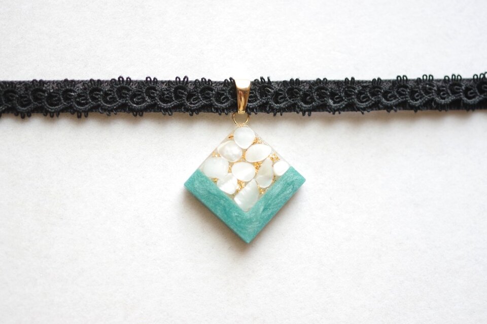 レジンでスクエアモチーフのチョーカーを作りました♪
