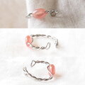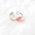 ツイストしたサージカルステンレスワイヤーにほんのり透明感と艶感のあるオレンジピンクのインカローズを一粒組み込んだ、シンプルで上品な雰囲気の「片耳用」イヤーカフです。