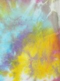 全て染色されるタイダイ染め、絞り染めの作品群。