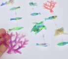 色々な海の生き物が穏やかな海を泳いでいる、楽しいミニモビールになりました。