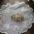 細かなフィリグリーで可愛い花を3つそろえたブローチ。