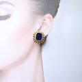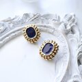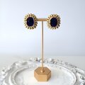 【フランス買付】ヴィンテージ ネイビーエナメル×ゴールドフレーム イヤリング 1980s【1万円以上で送料無料】