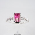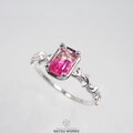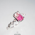 鮮やかなピンクのグラデーションを持つブラジル産・トルマリンを、唐草の細身のリングにセットしました。
