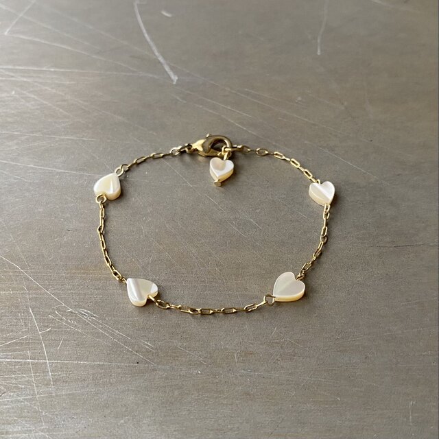 小さなハートのシェルがキラキラと輝くレトロ可愛いUSAヴィンテージブレスレット。身につけやすいサイズ感でデイリーユースにもおすすめです。