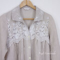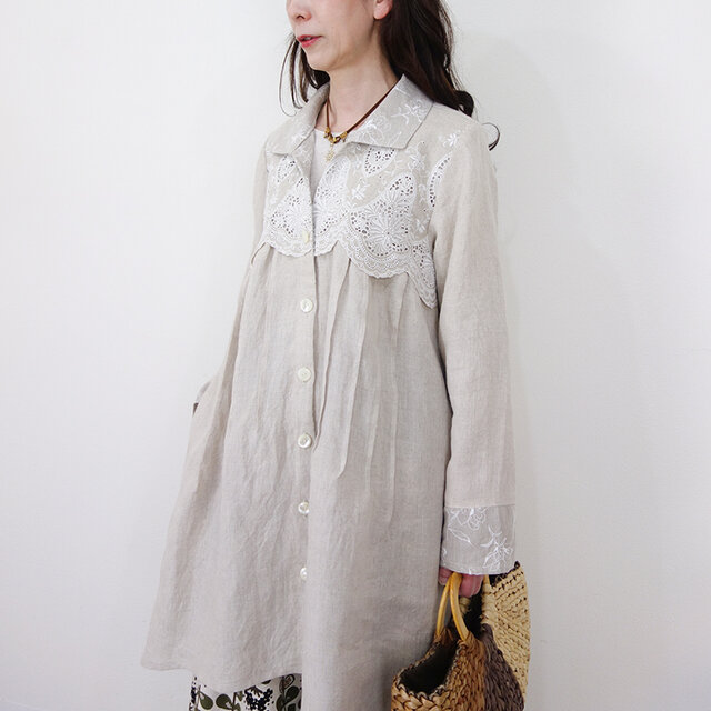 ・襟・前立て・袖口・見返し: リネンエンブロイダリー刺繍生地
