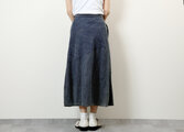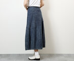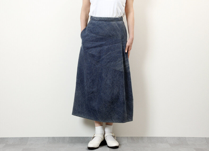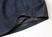 特に季節の変わり目などにデニム素材はピッタリですね。ウエストベルトにゴムを使用していますので、楽に履いていただけますが、きちんと感があります。