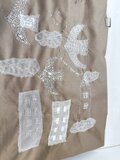 雲やビルはミシンで押さえて手縫いやペイントで