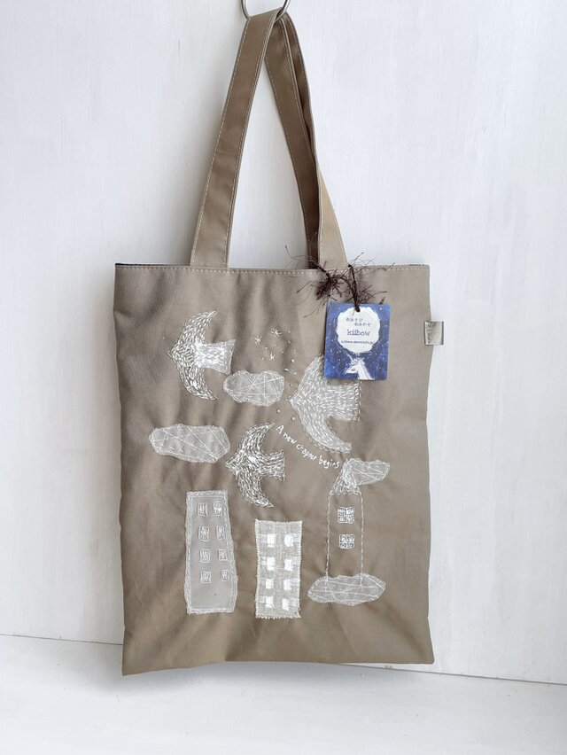 ステッチ鳥と雲とビル トートバッグ