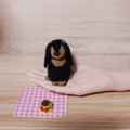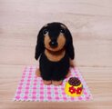 愛らしい瞳とふわふわな毛並みが魅力の、羊毛フェルトで丁寧に作られたダックスフンドの子犬です。