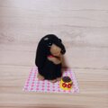 黒猫 羊毛フェルト 小さな猫ちゃんまったりーずーと子のままで居たいなぁ手の上に寝そべっている黒ねこさんは小さくて可愛いですね。大切にしますね。側に置いて置きたい位ですね。後、カップケーキも着いて嬉しかったです