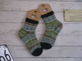 *編みあがり後、水通し&ブロッキングをしてますが、手編みの為履かれる前にお洗濯をお願いします。