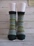 つま先&履き口を深緑で編んでます。