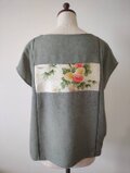 前後身頃に変化をつけて繋ぎ目にグリーンのテープを付け、お洒落で可愛いブラウスとして最大限に残り生地から甦った一品となります。