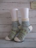 *編みあがり後、水通し&ブロッキングをしてますが、手編みの為履かれる前にお洗濯をお願いします。