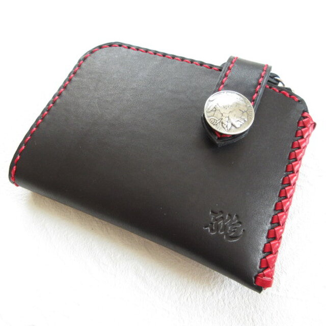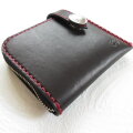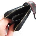 ◎ブラックのサドルレザーにレッドステッチが映えたインパクトのあるウォレットです。