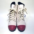 アイボリー オフホワイト 生成り ナチュラルカラー ホワイトブーツ 淡色コーデ ボルドー ワインレッド バーガンディ ダークレッド 赤系シューズ くすみレッド アイボリー ボルドー ホワイト ボルドー バイカラー ブーツ ツートンカラー 配色ブーツ ショートブーツ サイドジップブーツ ヒールブーツ 太ヒール 美脚ブーツ 脚長効果 歩きやすいブーツ 秋カラー 秋冬カラー 大人カラー 上品カラー 差し色ブーツ くすみカラー ニュアンスカラー 淡色 濃色 大人可愛い きれいめカジュアル モード系 上品コーデ 足元コーデ 差し色コーデ レディースブーツ 通勤コーデ デートコーデ