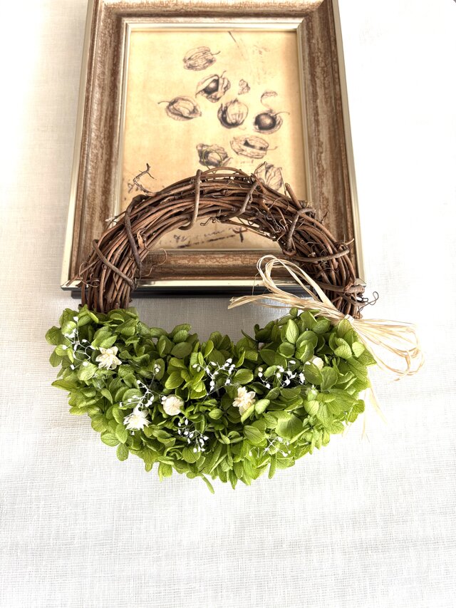 プリザーブドフラワーアジサイのハーフリース