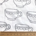 インド ブロックプリント生地 [50cm単位切売] サンガネリ ティーカップ モノクロ コーヒー キッチン IF0480