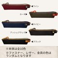 バイカラーのファスナーと金具、レザー部分のカラーはランダム。