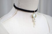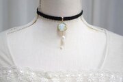 【受注製作】レジンアート スライスアゲートとタティングレースとベルベットリボンのチョーカー〈始まりの鐘〉