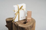 専用ボックスにリボンを掛け、お渡し用の手提げ袋をお付けします。