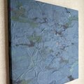 和紙の質感と透明感を活かした、レイヤードによる抽象作品。