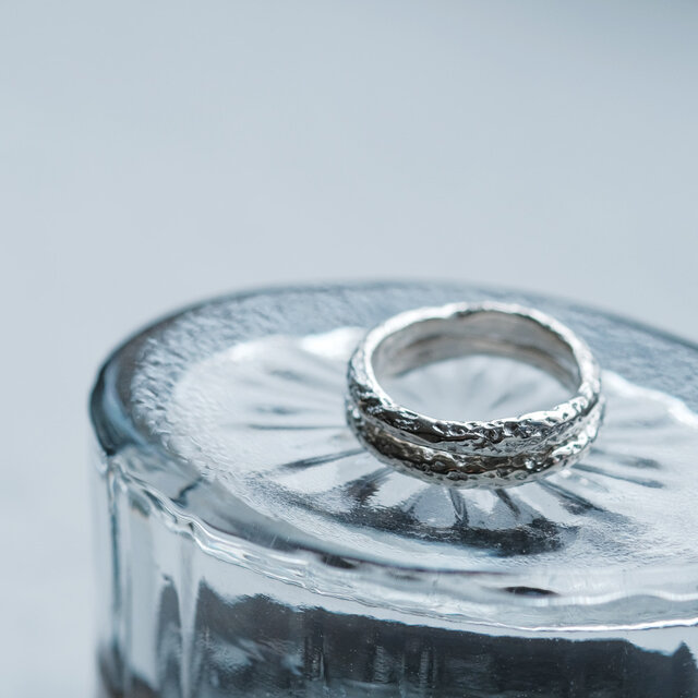 木の皮モチーフの2点セットリング。