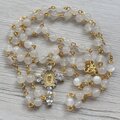 天然石ホワイトムーンストーン(フェルスパー)を使用したロザリオです。
