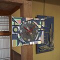 時計盤には古民家の廃材など薄い板、窓枠などを利用して新しい感覚に作り変えました。