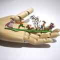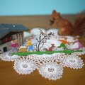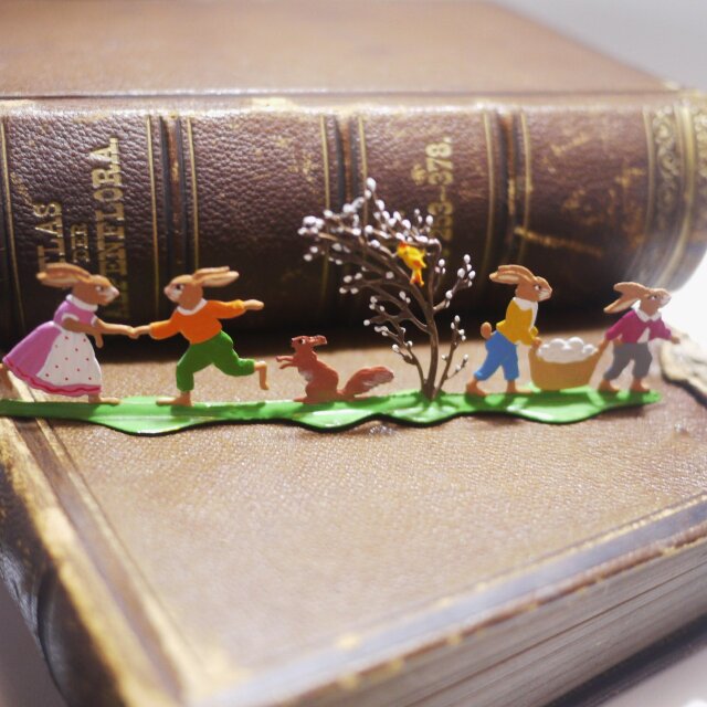 イースターを祝うウサギ家族の様子を表す錫飾り。