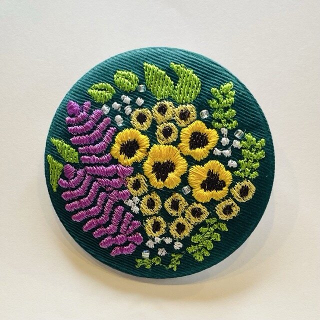 総刺繍のデザインブローチです。