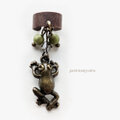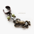 蛙さんのモチーフをマットなグリーンのプラパールやグレーのビーズので飾ったアンティーク調イヤカフです
