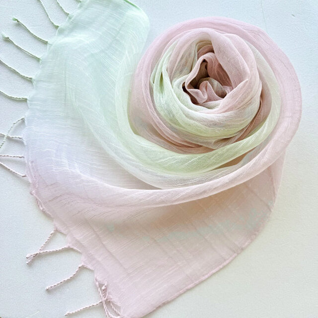 かろやかコットンシルク*桜色×白緑色*手染めのストール
