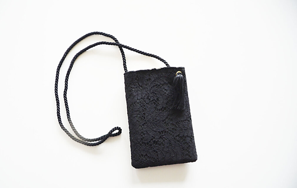 ●フランス製の上質なブラックのリバーレースを使用した2Wayスマホポーチです。