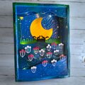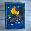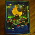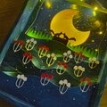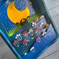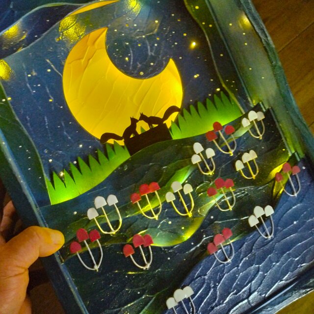切株で寄添うリス達は、月灯りに浮かび上がるようシルエットで表現しました。