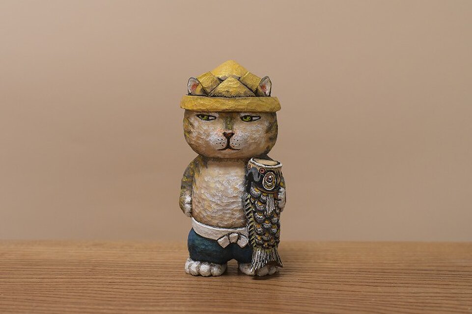 五月人形のこいのぼりを持ったねこちゃんです。