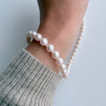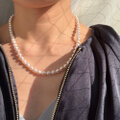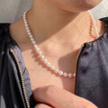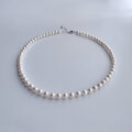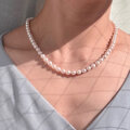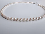 日本産あこや真珠ならホワイトピンクカラーで定番の上品さで清楚な輝きをしています。パールの1つ1つの間にクッションを入れて仕上げてあります。金具(クラスップ)はアジャスターで約4cm長さ調節できるタイプ。